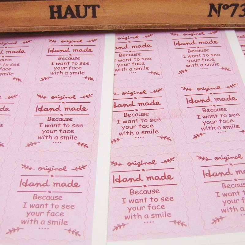 1シート、14個の英語でハンドメイド(Hand made )と書かれた切手のような形の手作りをアピールできるステッカーシール販売。