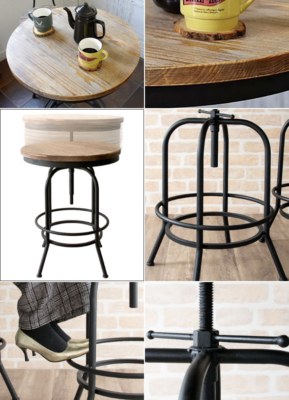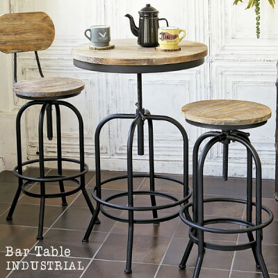 バーテーブル INDUSTRIAL インダストリアル 高さ73〜95cm ハイテーブル リフトテーブル ラウンドテーブル テーブル 机 高さ調整 丸型 円形 ブルックリン アンティーク 幅60cm ヴィンテージ KNT-A401 送料無料